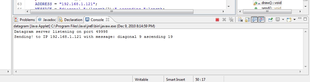My Datagram project worked by recieving a string from the computer in the chain before it. The string is displayed in a box.